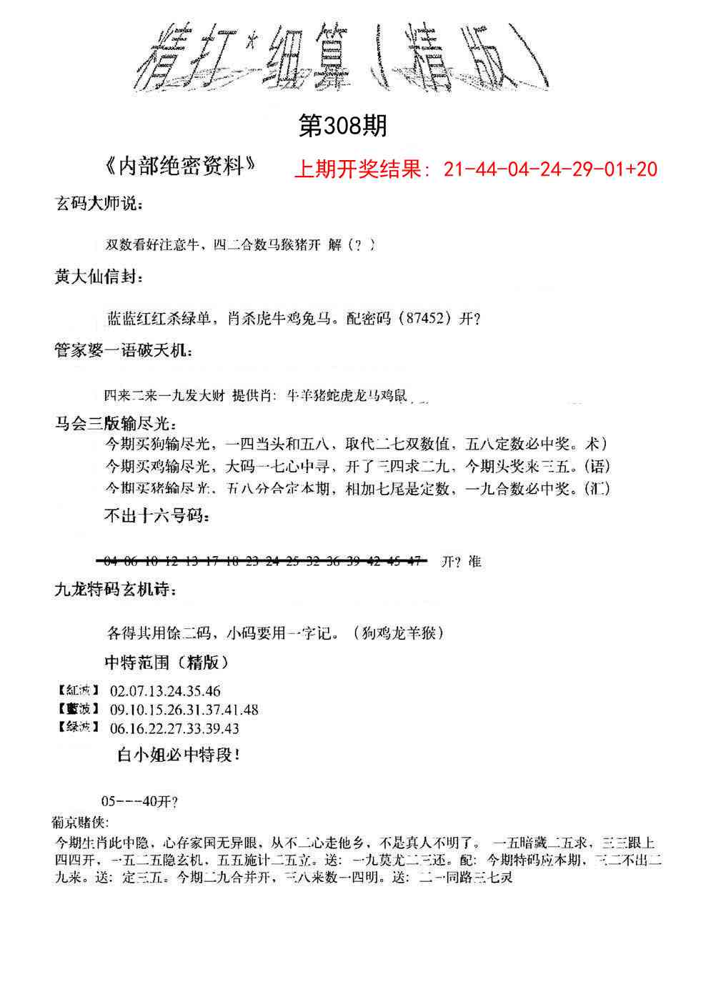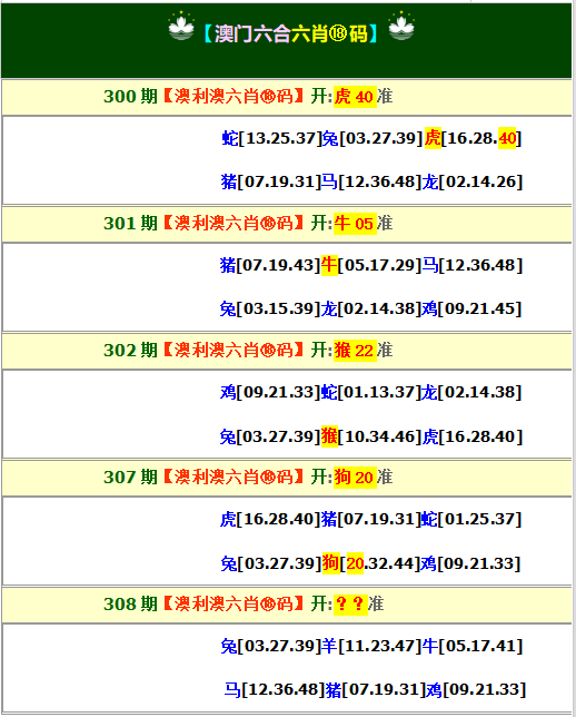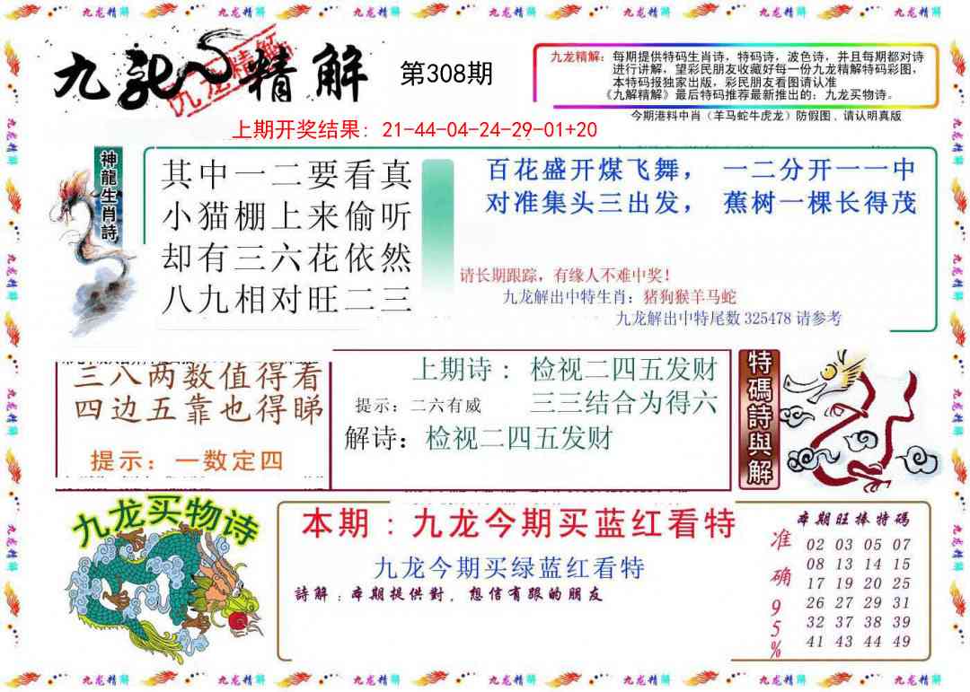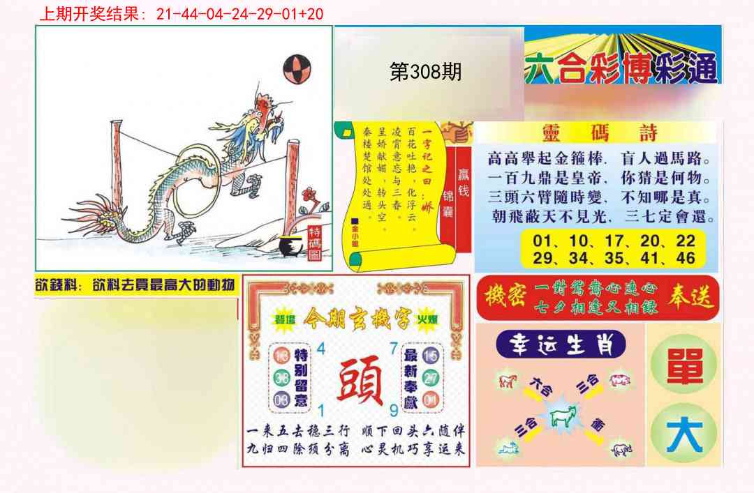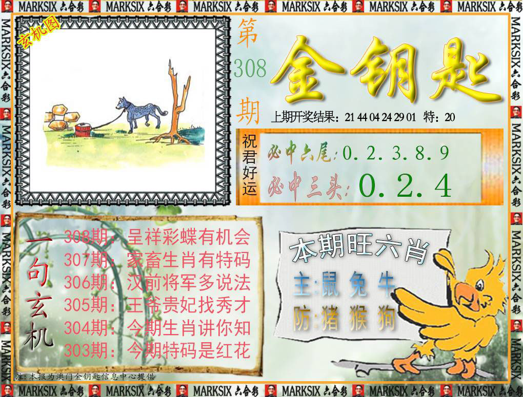 308期:五肖[猴虎龙马蛇] 308期:五尾4-6-8-0-9